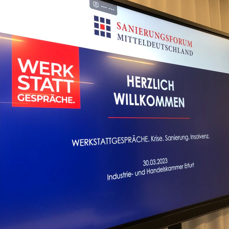 Die Diskussion dieser und weiterer hochrelevanter Fragestellungen stand im Fokus der WERKSTATTGESPRÄCHE Krise. Sanierung. Insolvenz. in Erfurt. Das Sanierungsforum Mitteldeutschland e.V. lud zu einer weiteren Ausgabe dieses Veranstaltungsformats in die Industrie- und Handelskammer der Landeshauptstadt Thüringens. Rund 40 Teilnehmer*innen aus dem unternehmerischen, juristischen und steuerlichen Umfeld sowie dem Bankwesen nahmen am informativen Meinungs- und Gedankenaustausch zu aktuellen Themen rund um die Restrukturierung und Sanierung von Unternehmen teil.